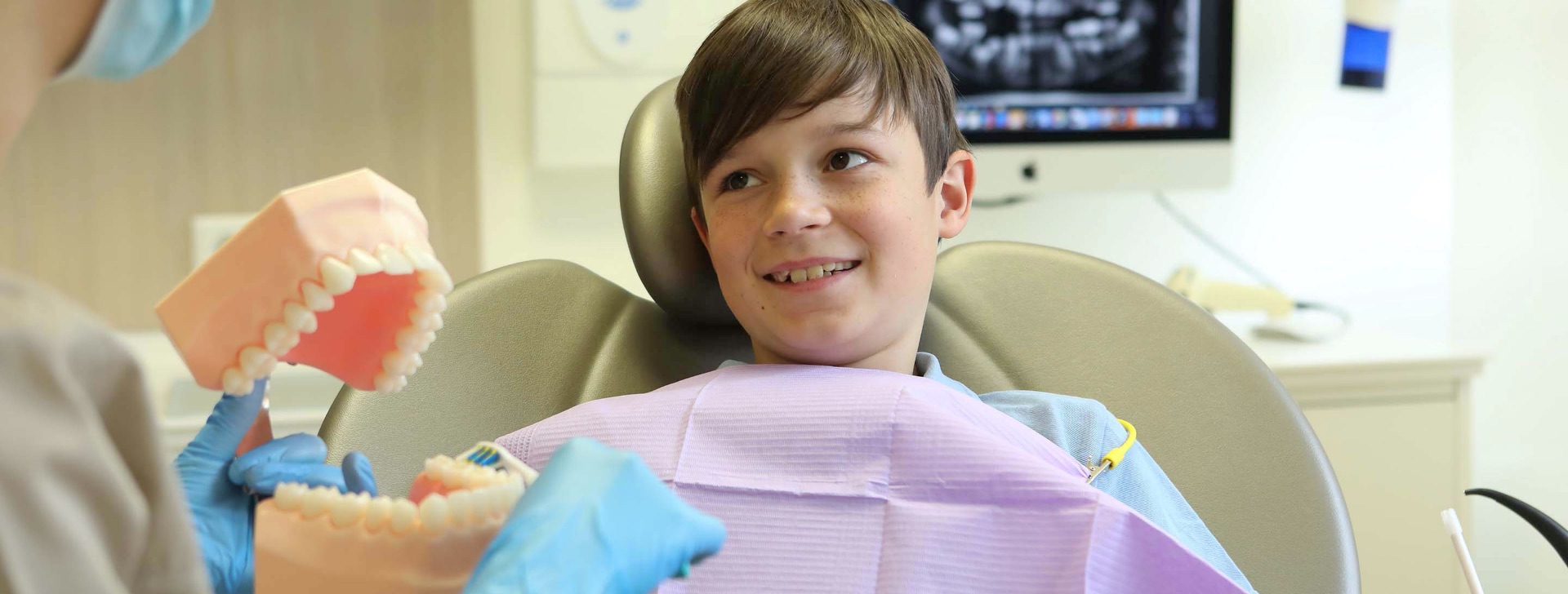 Kinder ab 6 Jahren erlernen in der Putzschule spielerisch das systematische Zähneputzen und Allerlei darüber, wie man seinen Zähnen Gutes tut. Sie können diese Leistung für Ihre Kinder einmal pro Halbjahr in Anspruch nehmen. Vor diesem Alter müssen Eltern die Zähne regelmäßig nachputzen, da die Kleinen motorisch noch nicht so zielgerichtet putzen können. Bei manchen Kindern ist das Nachputzen auch später noch sinnvoll. Ab zwölf Jahren spielt die Reinigung der Zahnzwischenräume eine wichtige Rolle. Außerdem brauchen Kinder mit festsitzenden Zahnspangen besondere Anleitung zur Pflege ihrer Zähne. Wir geben die richtigen Tipps – altersgerecht und mit Spaß.